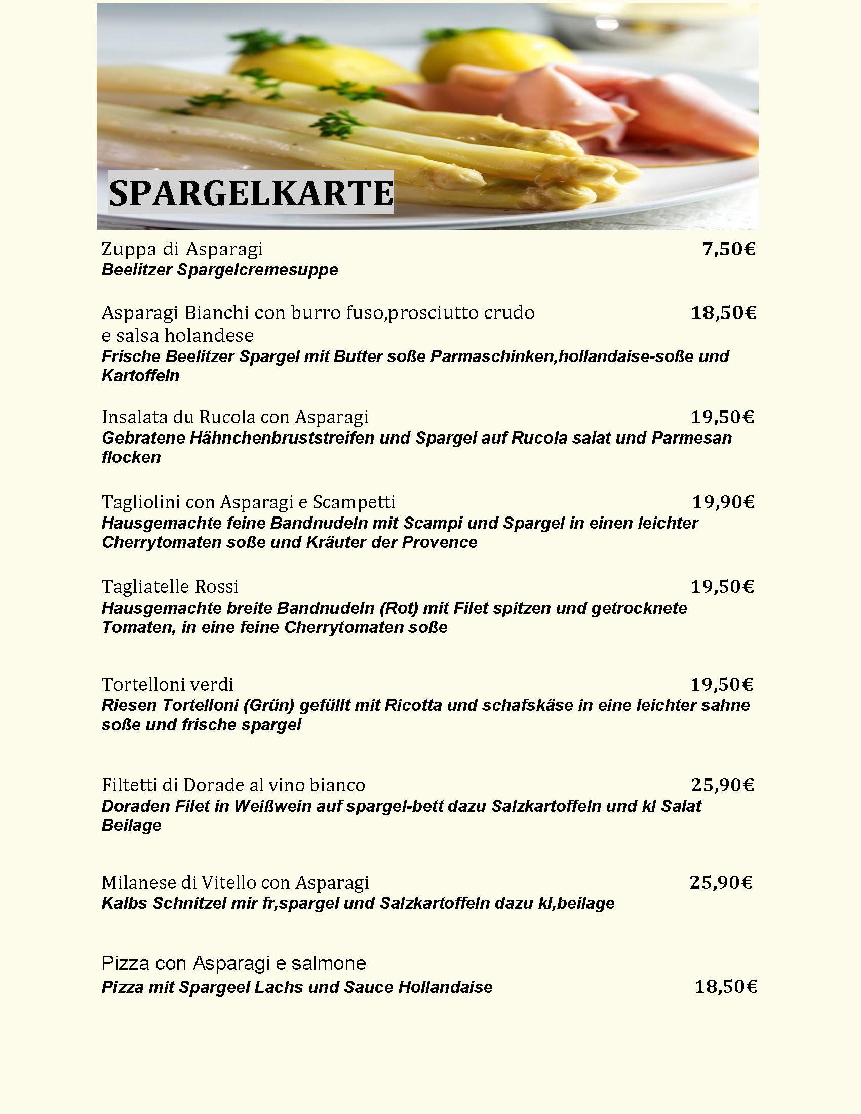 (ausser Pizza Mare chiaro, Pizza Scampi, Pasta Mista,Linguine Scampi,Linguine Mare )